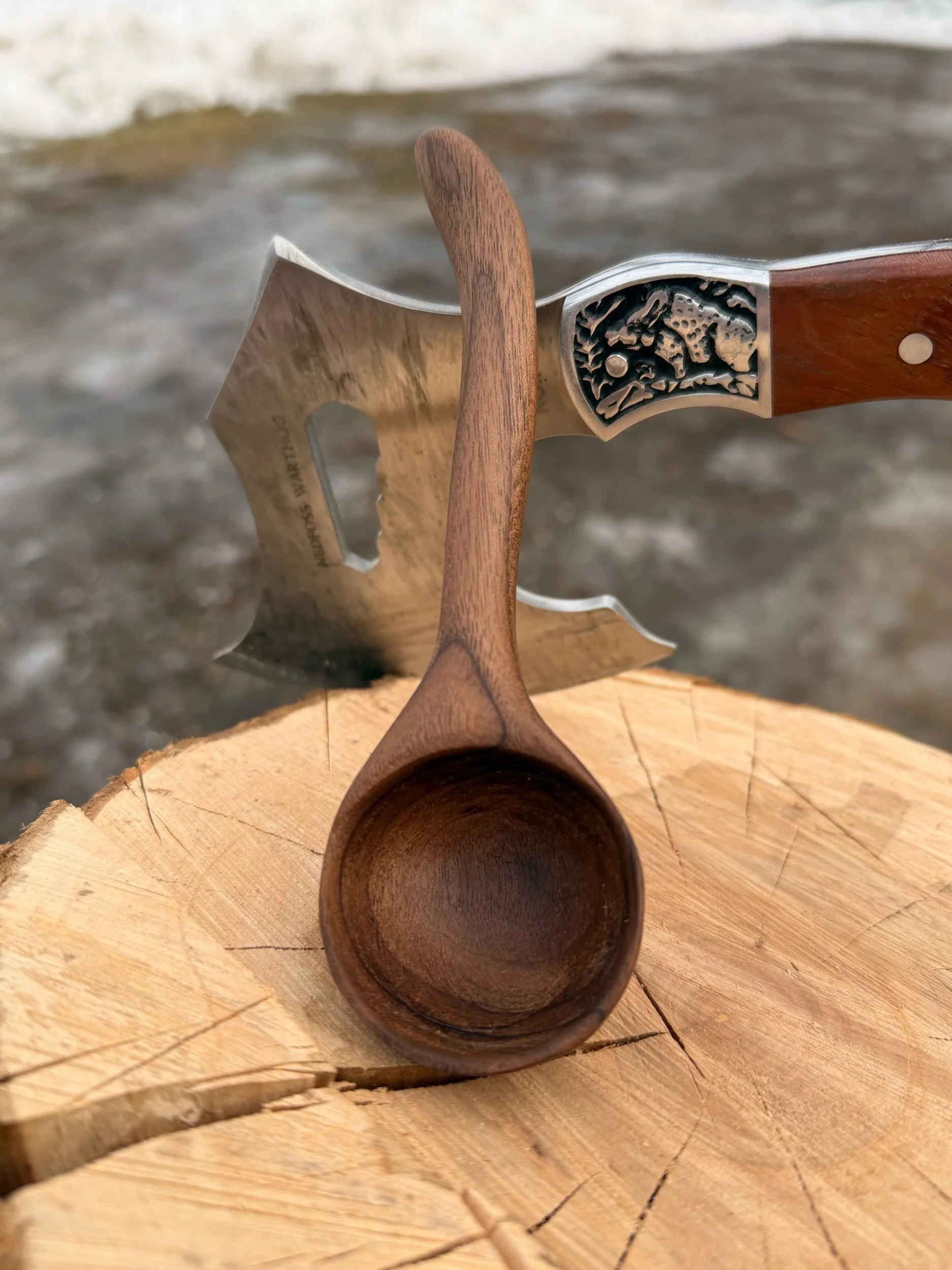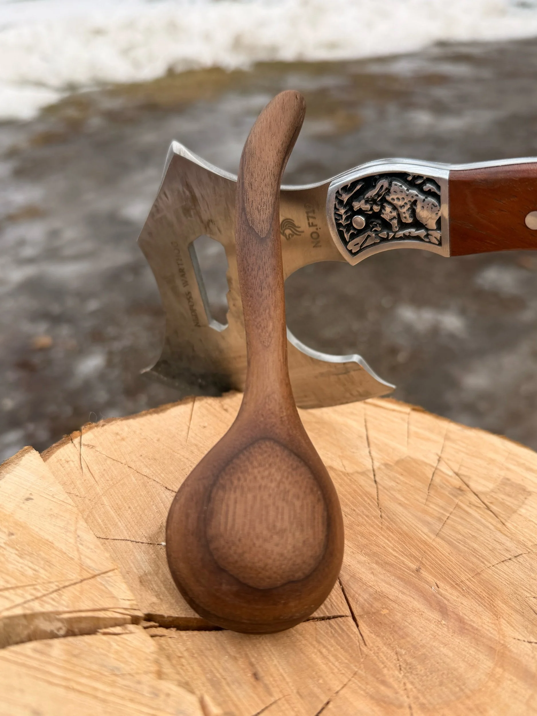 This one-of-a-kind coffee scoop is hand-carved from rich Vermont walnut, showcasing its natural grain and smooth feel. Finished with a food-safe beeswax oil, it measures out your morning grounds with simple, sturdy elegance. A small, functional piece of handmade art for your daily brew.
